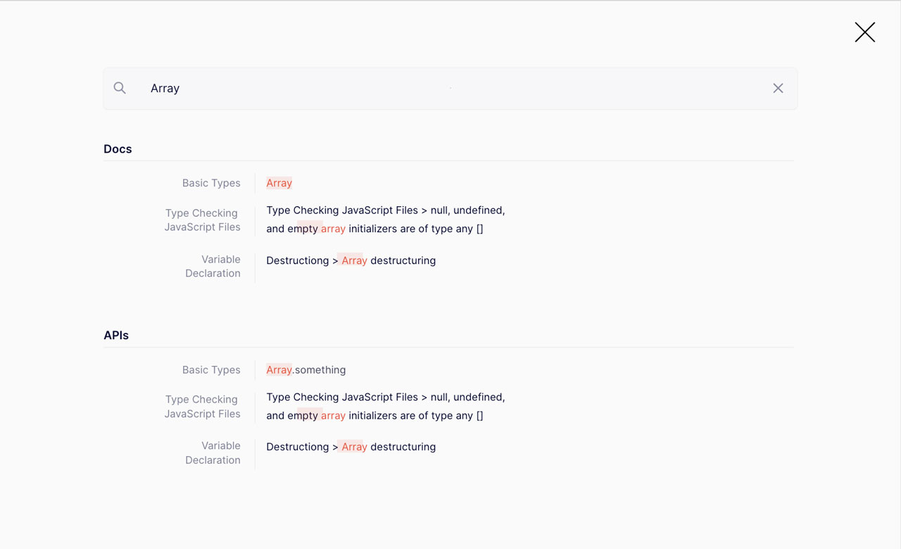 We did the ground work for our search feature and we will get into more detail as soon as we are able to generate API docs with our aforementioned doc-tools. Like with the API docs, we'll first need the doc-tools infrastructure so we can generate indexable data for Algolia as well.